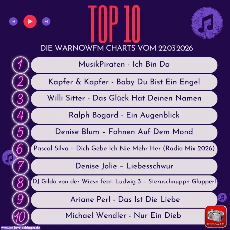 Unsere Hörercharts vom Sonntag den 22.03.2026