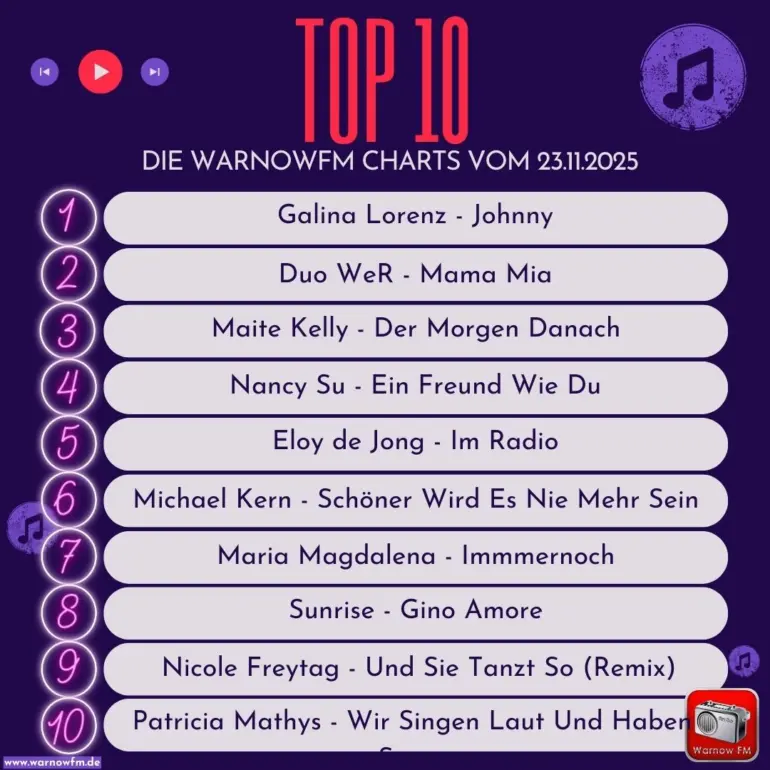 Unsere Hörercharts vom Sonntag den 23.11.2025